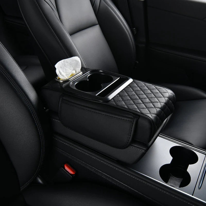 Comes with two cup holders and slots for your phone and cards. Keep everything within easy reach. A perfect solution for staying organized while driving.